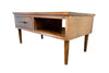 This BC-made coffee table is available in multiple finishes on solid maple or oak, with your choice of hardware. It comes with an open cubby and a sealed, solid pine drawer that have a large volume and slide smoothly on full extension ball bearing glides.